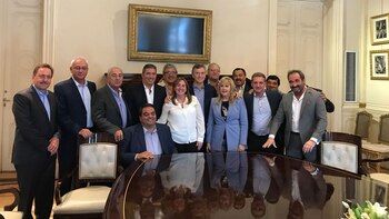 Lejos de la dura disputa entre el Gobierno y un sector relevante del sindicalismo, encabezado por Hugo Moyano, Mauricio Macri y Jorge Triaca se reunieron este jueves por la tarde en Casa Rosada con una docena de gremialistas que habían acompañado al ministro de Trabajo en una reciente gira por Europa, y con los que conversaron acerca de los desafíos del sector en el marco de los cambios en el mercado laboral.