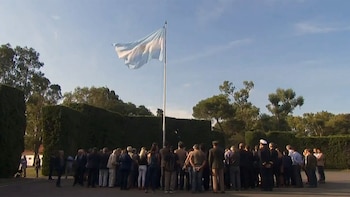 Tras las palabras del presidente todos los que participaron de la ceremonia se acercaron hasta el playón de la Quinta de Olivos, donde se encuentra el mástil en el que flamea la bandera argentina y donde se realizó un toque de silencio en homenaje a los héroes de Malvinas.