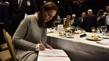 Después de almorzar con los rotarios, lo primero que hizo fue pedir disculpas. En un ámbito formal donde hubo más invitados de lo habitual y donde la corbata es un accesorio obligatorio, la gobernadora llegó impecablemente peinada y maquillada pero vestida de jean gastado azul, sweater largo gris y botas negras. "No es un desaire que haya venido de jean y botas. Era un día complicado y fui a barrios del Conurbano" se justificó, y agradeció a los rotarios que "ayudan mucho para que la provincia esté mejor". Más adelante contó que estuvo en barrios como Puerta de Hierro y 17 de Marzo en La Matanza "donde hace un año no podía entrar porque debe ser uno de los lugares donde más droga se vende". Y enumeró, como en gran parte de su exposición, lo que hizo allí Gendarmería y el Estado provincial y nacional.