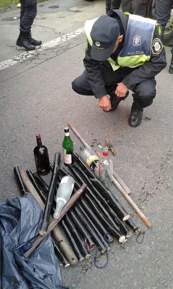 El vehículo, que circulaba por la autopista Riccheri mano a Capital, fue interceptado por personal policial que, al efectuar la inspección del vehículo, incautaron 11 garrotes, botellas de vidrio y gomeras con proyectiles de acero.