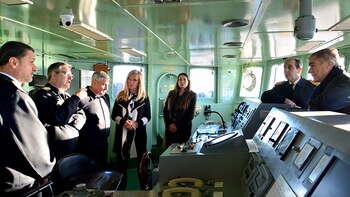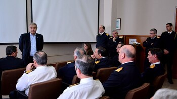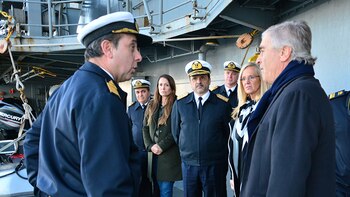 Aguad requirió a los marinos precisiones sobre las tareas de búsqueda que en la actualidad se están realizando exclusivamente a cargo de unidades de la Armada. En tal sentido a bordo del destructor ARA La Argentina fue informado por la tripulación de las tareas que hasta hace pocos días se cumplieron desde esa embarcación militar.