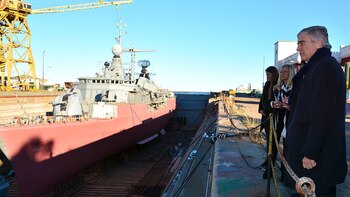 El ministro aprovechó la visita para inspeccionar el avance de las obras de reparación de otro de los destructores abocados a las tareas de búsqueda, el Almirante Brown, que se encuentra en tareas de alistamiento en el dique seco que funciona dentro de la base naval. Ya en la vecina base aeronaval Comandante Espora, reafirmó la pronta incorporación a la aviación naval de al menos 5 aviones Súper Etendard, con miras a reforzar la seguridad aérea durante la cumbre del G20.