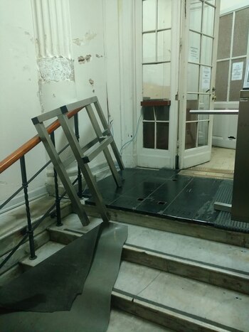 Dentro del Rectorado, los manifestantes rompieron computadoras, escritorios, mampostería y vidrios. También usaron los matafuegos y amenazaron a empleados de la Tesorería que funciona en la planta baja.