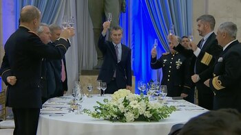 Hacia el final del discurso en la cena de camaradería, Macri recordó a los 44 tripulantes del ARA San Juan. "Es un dolor que llevamos en el corazón", expresó. Hubo un aplauso cerrado y agradecimientos. Pero también quedó flotando en el aire el sabor amargo por los recortes que se vienen y por la falta de un "planeamiento estratégico" para analizar cómo se encara en terreno la reforma que se viene.