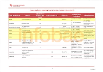 Infobae publicó en los últimos días varias notas a raíz de la denuncia interna que presentó el ingeniero Sánchez (su verdadero nombre se reserva), un ex empleado de Isolux enviado a Río Turbio para sacar adelante la obra, pero que duró apenas unos meses. El anexo 13 de su presentación lleva el título "Tabla de análisis de subcontratistas en Río Turbio con sospechas de vinculaciones políticas".