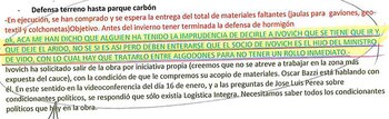 "Hay que destacar que el viceministro del Ministerio de Seguridad, Sergio Berni, y a instancia suya, mantuvo numerosas reuniones conmigo en Río Turbio, 28 de Noviembre y Buenos Aires para preguntarme sobre la deuda que Isolux mantenía pendiente en los contratos de Logística Integral, diversas máquinas alquiladas por horas, construcción de viviendas para uso del personal del proyecto en la localidad de 28 de Noviembre y la rehabilitación de barracones para trabajadores en la localidad de Río Turbio", agregó el ingeniero Sánchez.