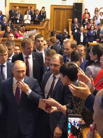 La diputada nacional Mayra Mendoza, junto a otros representantes parlamentarios, participa en la ciudad rusa de San Petersburgo de un Foro Euroasiático de Mujeres. Al finalizar una actividad, la legisladora se acercó hacia donde se encontraba el presidente de Rusia, Vladimir Putin, para entregarle un documento sobre la situación judicial de Cristina Kirchner. En él, plantea que la ex mandataria es víctima de una "guerra jurídica".