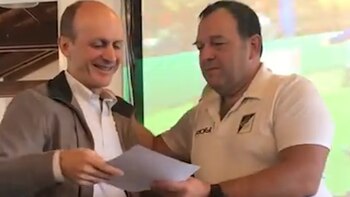 Los chistes, en cambio, y más elogios y agradecimientos, los hizo el embajador inglés Mark Kent, a quien continuó en el uso de la palabra el capitán del equipo de los veteranos, el ex titular de la Aduana y hoy director del Banco Nación, Gómez Centurión. Emocionado, el funcionario agradeció a la organización y señaló: "Representamos a muchos veteranos a lo largo y ancho del país. Simplemente lo que hemos hecho es cumplir con nuestro deber que era combatir por nuestra Patria y por los valores que sostienen una nacionalidad y el sentido de Patria".