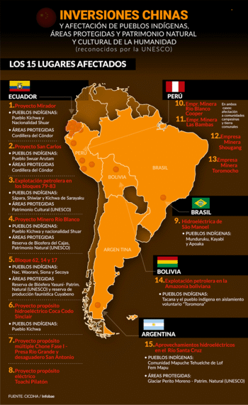 Además, el informe de este grupo de 21 ONG señala que después de casi 10 años de haber experimentado una ola masiva de financiamiento chino en América Latina, cabe preguntarse: ¿Qué consecuencias ha tenido este financiamiento en la vida de las comunidades donde se desarrollan los proyectos?