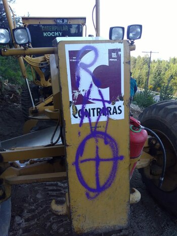 Este miércoles por la noche un grupo que dejó inscripciones del RAM prendió fuego a maquinarias afectadas a la construcción del Gasoducto Cordillerano, que conectará a 22 mil usuarios en 25 poblaciones de las provincias de Chubut, Río Negro y Neuquén, según la información oficial a la que accedió Infobae. Aún no se pudo determinar cuántas personas participaron del ataque, ni se pudo comprobar que efectivamente se trate del grupo mapuche, porque no hubo testigos del hecho.