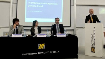 Hoy se realizó la 1º Competencia de Alegatos en Derecho Penal de la Escuela de Derecho de la Universidad Torcuato Di Tella, cuyo tribunal fue encabezado por el juez Gustavo M. Hornos, miembro de la Cámara Federal de Casación Penal, presidente del Sistema Interinstitucional de Control de Cárceles y profesor titular de Derecho Penal y Procesal Penal en diversas casas de estudio del país, junto a los docentes Marcelo Ferrante y Alejandra Verde. La actividad fue organizada por el profesor David Mielnik.