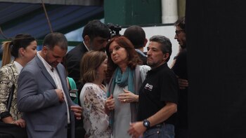 Acompañaron a CFK a Ferro diversos dirigentes, entre ellos Martín Sabbatella, Hugo Yasky, Carlos Heller y Horacio Verbitsky, Agustín Rossi, Fernando Espinoza, Verónica Magario, Cristina Álvarez Rodríguez, Roberto Baradel, Leopoldo Moreau.