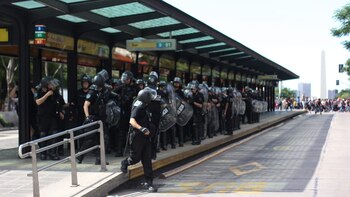 Entre los miles de manifestantes había representantes del Polo Obrero, el MTR, entre otros que portan banderas de protesta contra el G20, el FMI y la administración de Mauricio Macri.