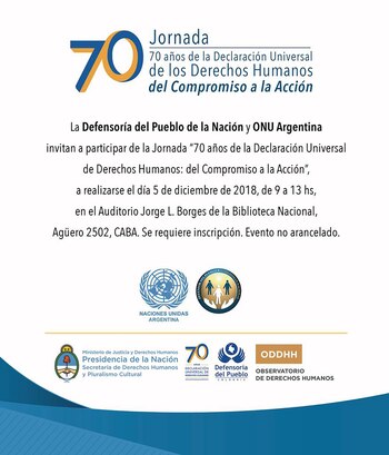 La Defensoría del Pueblo de la Nación y ONU Argentina organizaron la jornada "70 años de la Declaración Universal de Derechos Humanos: del Compromiso a la Acción". Uno de los oradores será el juez Gustavo M. Hornos.