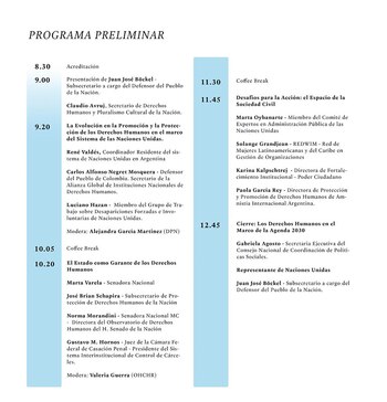 Entre los oradores estarán el juez Gustavo M. Hornos, que será parte del panel "El Estado como Garante de los Derechos Humanos", así como también el secretario de Derecho Humanos, Claudio Avruj, y el titular de la Defensoría del Pueblo, Juan José Bockel.