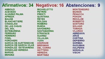 Tras un debate que duró casi tres horas y fue adelantado debido al G20, el proyecto solo contó con los 34 votos afirmativos del bloque Vamos Juntos. Tanto el kirchnerismo como el Bloque Peronista y los partidos de izquierda votaron en contra. Evolución, el GEN y el Partido Socialista decidieron abstenerse.