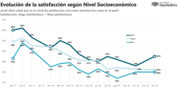 En esa línea, según el trabajo, hay una marcada diferencia en los niveles de satisfacción con el Gobierno según el nivel socioeconómico: el tercio más pudiente tiene un 35% de satisfacción, por encima de la percepción de la clase baja (20%) y de la clase media (22%).