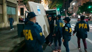 Fuentes policiales indicaron a Infobae que el procedimiento duró dos horas y que el material lo entregó el secretario de la ex Presidente a la Policía. Del operativo participaron cuatro brigadas de la fuerza.