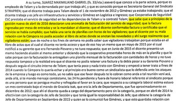 En el caso de Suárez, admitió que él fue parte de una maniobra por la cual se pactaron sobreprecios con la cooperativa de seguridad CLC y confesó que, presionado por Giménez, tuvo que aprobar el pago de horas extras de vigilancia que nunca se hicieron, hecho que le permitió al titular de Sitrapren obtener de esta forma unos 130.000 pesos mensuales. Y que por "su mala relación con La Cámpora" no podía acceder al libro de actas donde se registraban las novedades y los nombres de los vigiladores.