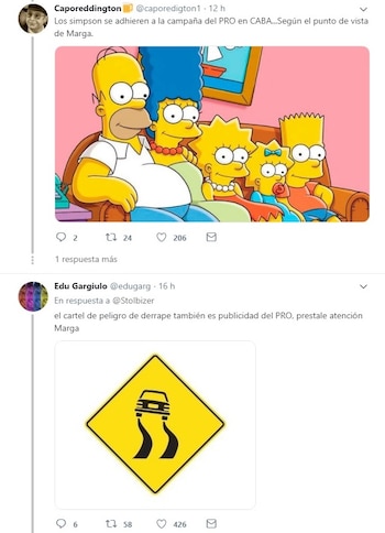Los usuarios de Twitter tomaron nota de este dato y enseguida se desató una ola de memes. "Los Simpson adhieren a la campaña del PRO en CABA", reza uno de los mensajes, acompañado por una foto de la popular serie de los personajes amarillos.
