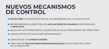 Ante este escenario de crisis para el sector industrial, pymes y de usuarios, Solá presentó un proyecto con mecanismos de control que incluya un nuevo Ente Regulador; asociaciones de usuarios, universidades y sindicatos en el directorio; autoridades del directorio elegidas por el Poder Ejecutivo y el Congreso Nacional, con plazos en sus cargos; creación de un Consejo Asesor; y la creación de Delegaciones Regionales/locales para los reclamos de la población.