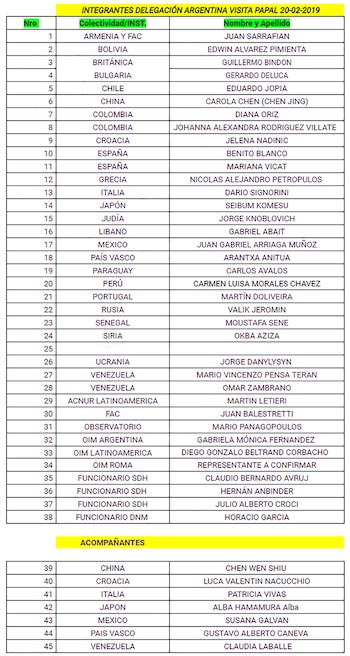 "Hemos venido junto a 40 colectividades y le hicimos entrega a Francisco de la declaración 'Argentina, Mosaico de Identidades', que firmamos días atrás entre todos, para subrayar nuestro compromiso de país de puertas abiertas y de respeto, en cumplimiento de las leyes que nos ordenan. Nuestro Gobierno definió un plan Nacional de Derechos Humanos que se propone, entre otros ejes, trabajar por la inclusión contra la discriminación, y ese compromiso estamos honrando día a día y también con este viaje", concluyó el secretario de Derechos Humanos.