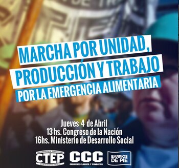 Las organizaciones sociales también serán de la partida. Barios de Pie, la Confederación de Trabajadores de la Economía Popular (CTEP) y la Corriente Clasista y Combativa (CCC) marcharán también al Congreso a las 13. Luego se movilizarán al Ministerio de Desarrollo Social a las 16 con la consigna por "la Unidad, la Producción, el Trabajo y la Emergencia Alimentaria.