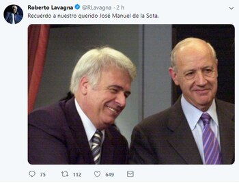 Por su parte, el ex ministro de Economía y precandidato presidencial Roberto Lavagna evitó confrontar directamente los dichos de la diputada, pero publicó una foto donde se lo ve junto al fallecido mandatario con el mensaje "Recuerdo a nuestro querido José Manuel de la Sota".