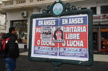 Por ejemplo, en la esquina de Piedras y Rivadavia hay imágenes de los funcionarios con manchas rojas en los ojos emulando sangre y un mensaje inquietante: Buscado, aparición sin vida.