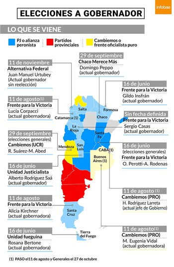En sus distintas variables, el peronismo mantuvo sus gobernaciones en Córdoba, Chubut, Entre Ríos, La Pampa, San Juan y Tucumán. Aunque al momento de computar su influencia en los comicios presidenciales, es necesario distinguir sus pertenencias internas y sus alineamientos políticos.