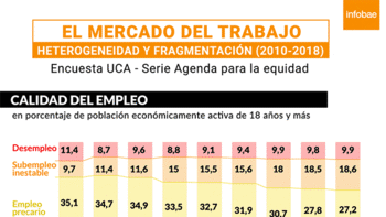 Los datos abrumadores de la situación laboral en la Argentina surgen de la última encuesta del Observatorio de la Deuda Social de la Universidad Católica Argentina (UCA) sobre el panorama del empleo en la Argentina en el 2018 y revelan que en los últimos años siguió aumentando la proporción de ocupados en el sector microinformal de la estructura productiva (actividades laborales autónomas no profesionales o llevadas a cabo en pequeñas unidades productivas de baja productividad, alta rotación y baja o nula vinculación con el mercado formal).