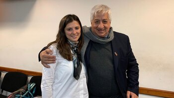 "Abrazando a la compañera María Amelia Expucci tras casi 3 años de lucha U.E.J.N. A paso de vencedores", puso Piumato en una foto que difundió junto a Expucci tras el plenario.