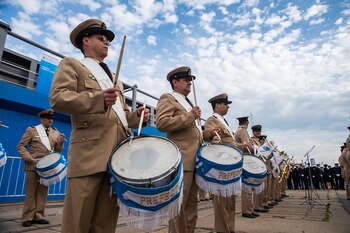 Si bien la ceremonia contó con la presencia de funcionarios con jerarquía de Secretarios y Subsecretarios de Estado, a último momento Guillermo Dietrich se bajó del mismo. Distinta fue la actitud de la Madrina del buque, Patricia Bullrich. La funcionaria era la encargada por protocolo de cortar las cintas celestes y blancas que "disparan" la tradicional botella de champagne contra el casco del buque, augurando a la nave fuerza en sus máquinas para afrontar mares embravecidos y buenaventura en sus navegaciones.