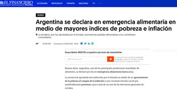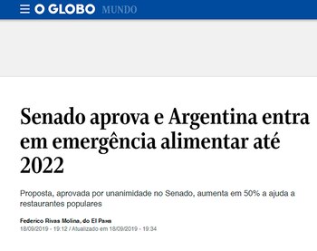 La noticia no pasó desapercibida y más si se tiene en cuenta que ocurrió en un país cuya capacidad para producir alimentos debería cubrir holgadamente las necesidades de toda su población. Fue por eso que medios de países como España, Italia, Estados Unidos, México o Colombia se encargaron de darle cobertura a la sesión del Senado.