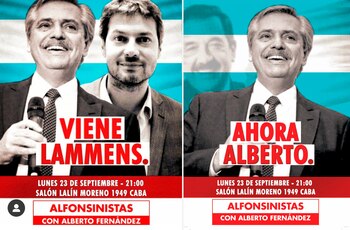 Después de su viaje a Bolivia y Perú, Fernández arrancará la semana en Lalín, un espacio casi más alfonsinista que Raúl Alfonsín. La consigna remonta al 83: "Ahora Alberto", se convoca desde un flyer que mandó a confeccionar el organizador, el legislador porteño Leandro Santoro, que poco a poco se fue haciendo amigo del candidato a presidente. Santoro no conoce las oficinas de México 337 pero sí el departamento de Puerto Madero, donde el domingo 11 de agosto compartió un almuerzo con los viejos amigos de Fernández después de que cada cual emitiera su voto.