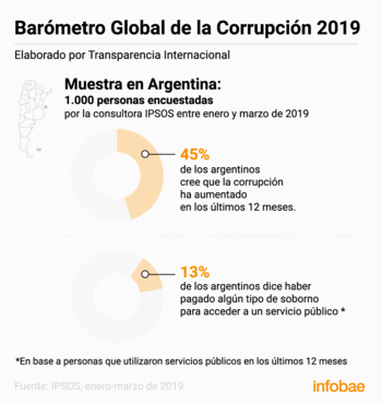 El Barómetro Global de la Corrupción es la encuesta más amplia en América Latina y el Caribe sobre las opiniones de los ciudadanos en 18 países, en relación a la corrupción y sus experiencias de soborno. Para su confección, fueron consultados más de 17.000 personas, entre enero y marzo de 2019. En 13 de esos países, las encuestas fueron realizadas por IPSOS, incluida Argentina, donde la muestra alcanzó a 1.000 casos.