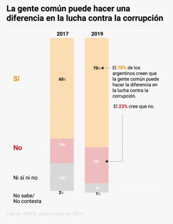 A pesar de esto, el Barómetro refleja que hay esperanzas de que se produzca un cambio positivo en relación a las prácticas corruptas. El 77 % de los ciudadanos encuestados sostuvieron que pueden ayudar a detener la corrupción. En Argentina, una cifra ligeramente inferior, el 70%, cree que la gente común puede hacer la diferencia en la lucha contra la corrupción.