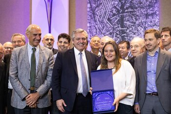 Sobre el final y antes de que lo interrumpieran con otro aplauso, hizo una crítica y un mimo al empresariado. “Yo también reniego de los empresarios ventajita, pero hay que ser empresario en Argentina”, enfatizó en referencia a las idas y vuelta de la economía, y repitió.
