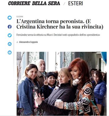 “La Argentina vuelve a ser peronista (y Cristina Kirchner consigue su revancha)”, así titula el diario de Milán. “No es un punto de inflexión, en Argentina la democracia casi siempre ha sido de Perón y sus herederos, en todas las variaciones posibles. Macri incluso tiene el récord de presidente no peronista que terminó su mandato. Pero lo logró a último momento, porque el país está hirviendo, molesto por una tasa de pobreza del 35 por ciento, endeudado como nunca antes, con una moneda débil de una forma muy preocupante. Fernández toma oficialmente el cargo el 10 de diciembre, pero tendrá inmediatamente que activar a sus técnicos para calmar los mercados y, sobre todo, contener al dólar y la erosión de las reservas”.