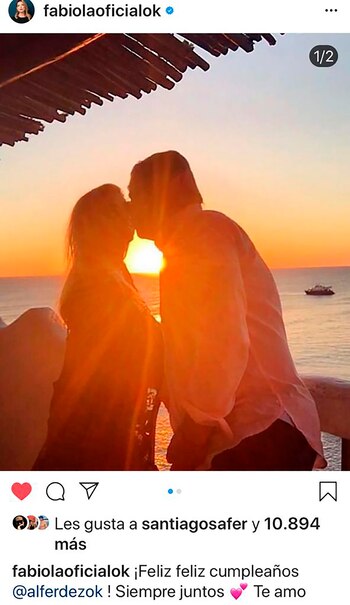 Fabiola Yañez publicó su mensaje en Instagram: una foto con el fondo de un sol poniente y la pareja dándose un romántico beso. “Siempre juntos. Te amo”, escribió.