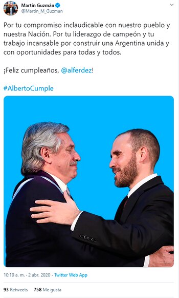 El Ministro del Interior, Eduardo “Wado” De Pedro, por su lado, escribió que “un país sale adelante cuando el Presidente gobierna para todxs”. Martín Guzmán, uno de los ministros de perfil más bajo, también realizó un saludo virtual: "Por tu compromiso inclaudicable con nuestro pueblo y nuestra Nación; por tu liderazgo de campeón y tu trabajo incansable por construir una Argentina unida y con oportunidades para todas y todos”, señaló el ministro de Economía en su saludo a Alberto Fernández.