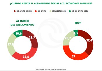 La predisposición a mantener el aislamiento descendió un 12% desde el 23 de marzo. Quienes muestran menor acuerdo con la extensión del aislamiento son los menores de 24 años y las personas de nivel socioeconómico bajo (un 12% menos que la media).
