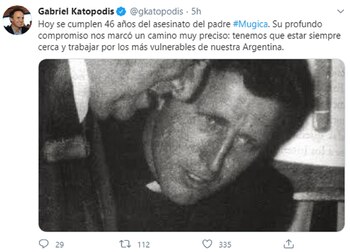 “A 46 años de su asesinato: Padre Carlos Mugica, presente”, saludó el jefe de ministros.