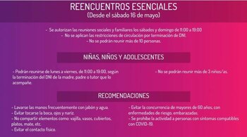Al respecto, Rodríguez Saá explicó que esta medida se tomó porque los vínculos entre las personas “son relevantes para incrementar el bienestar psicológico y emocional", por lo que en esos días y horarios se exceptuará el control de circulación. Sin embargo, aclaró también que los que deban trasladarse de un lugar a otro deberán hacerlo solamente en las fechas que les corresponda según su DNI.