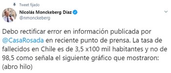 “Más allá de este error involuntario en los gráficos publicados, queremos dejar en claro que la situación en términos epidemiológicos de Argentina en el marco regional se informó de manera adecuada”, explicaron en referencia a la posición relativa de nuestro país.