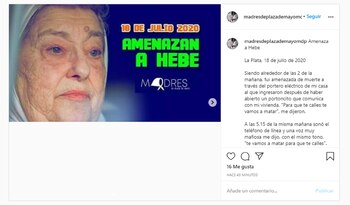 A través de un comunicado difundido a través de las redes sociales de Madres, Bonafini relató que durante la madrugada, cerca de las 2, una persona tocó el timbre de su casa y la amenazó a través del portero eléctrico.