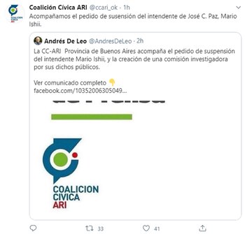 La mesa directiva de la Coalición Cívica-Ari de la provincia de Buenos Aires, que preside el senador Andrés De Leo, respaldó un proyecto presentado en el Concejo Deliberante de José C. Paz que busca suspender preventiva al intendente Mario Ishii a raíz de su presunto encubrimiento a la venta ilegal de drogas.