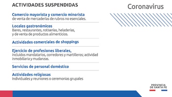 El Gobierno de Santa Fe anunció que a partir de la medianoche de este sábado volvieron a restringirse todas las actividades no esenciales en los departamentos Rosario, San Lorenzo, General López, Caseros y Constitución. La vuelta atrás durará 14 días debido al alarmante incremento de los contagios de coronavirus en la provincia.
