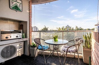 Uno de esos inmuebles, en Aranguren al 800, está a la venta. Según el aviso publicado por una inmobiliria de Puerto Madero, se trata de un departamento de 4 ambientes, con 115 m2 cubiertos y dos cocheras. Las imágenes que acompañan el aviso no dejan dudas: al lado de la parrilla luce el escudo de Ferro Carril Oeste.