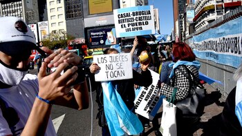 Los manifestantes se movilizaron con banderas argentinas y cacerolas. Por su parte, quienes fueron en auto hicieron sonar sus bocinas en señal de protesta. Otros mostraron pancartas y carteles con consignas como “los jueces no se tocan” y “basta de impunidad”.